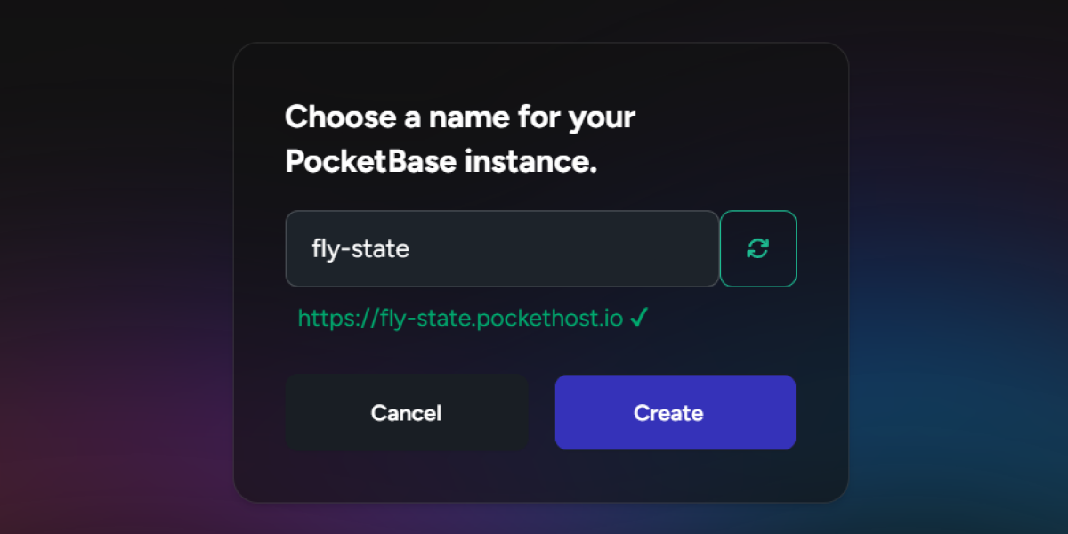 Choose a unique name for your instance, and that’s it! Your new PocketBase instance will be up and running in no time.