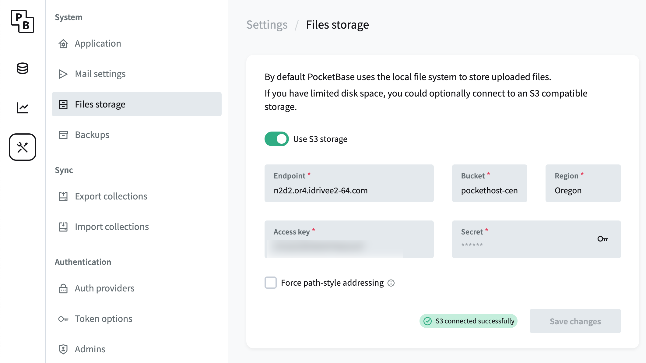 By storing files in S3, your PocketBase instance becomes far more portable. If you ever decide to migrate away from PocketHost, having your files already stored in S3 makes it easier to transition to another hosting provider.