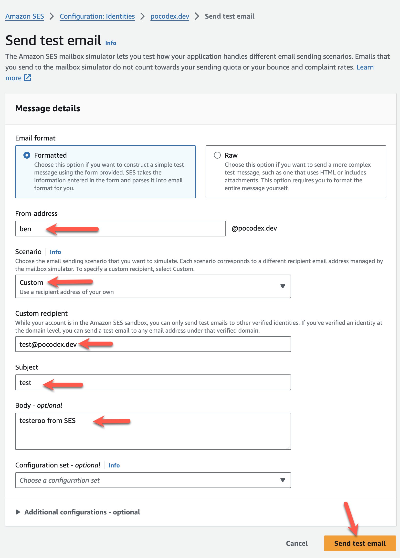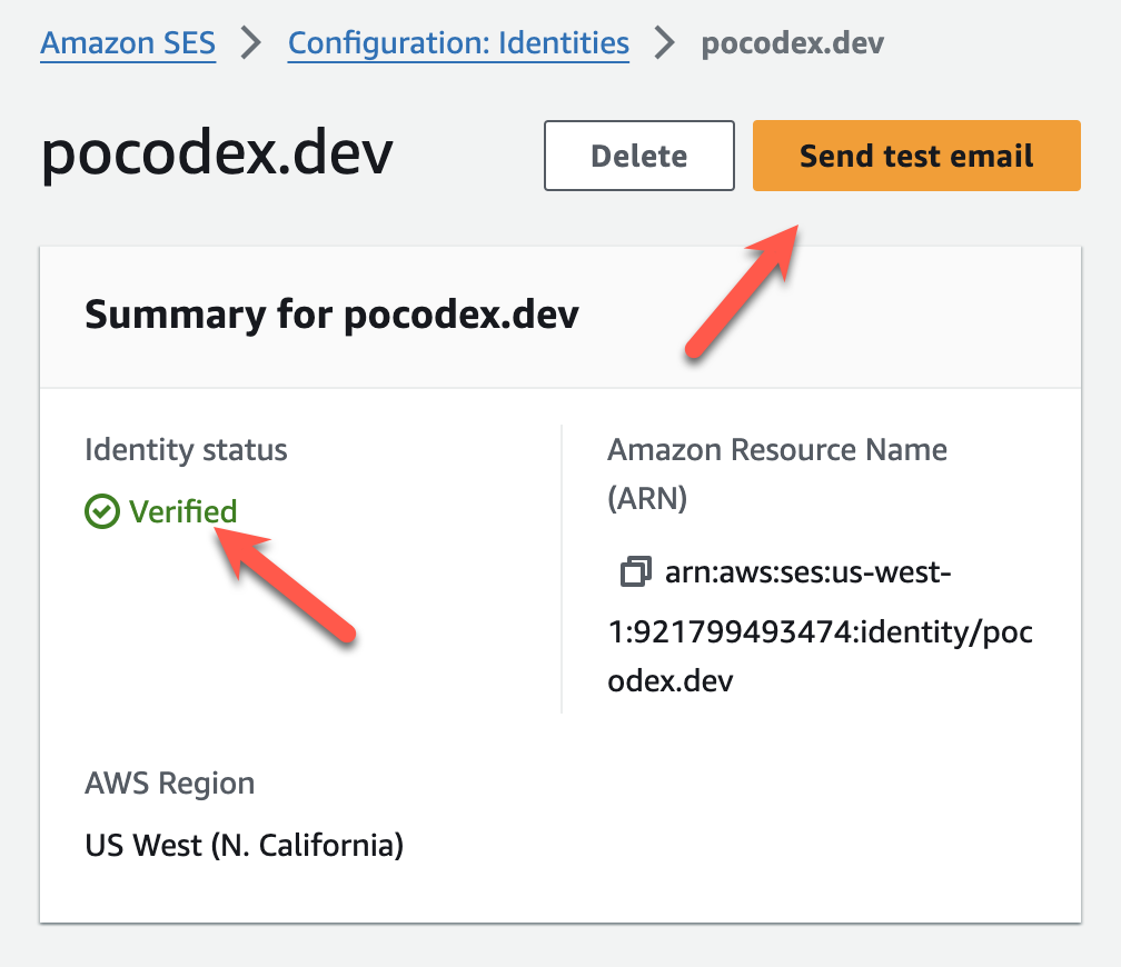 After adding the DNS records, go back to AWS SES and wait for the domain to show as verified. Then, send a verification email. You should receive it if everything is set up correctly.
